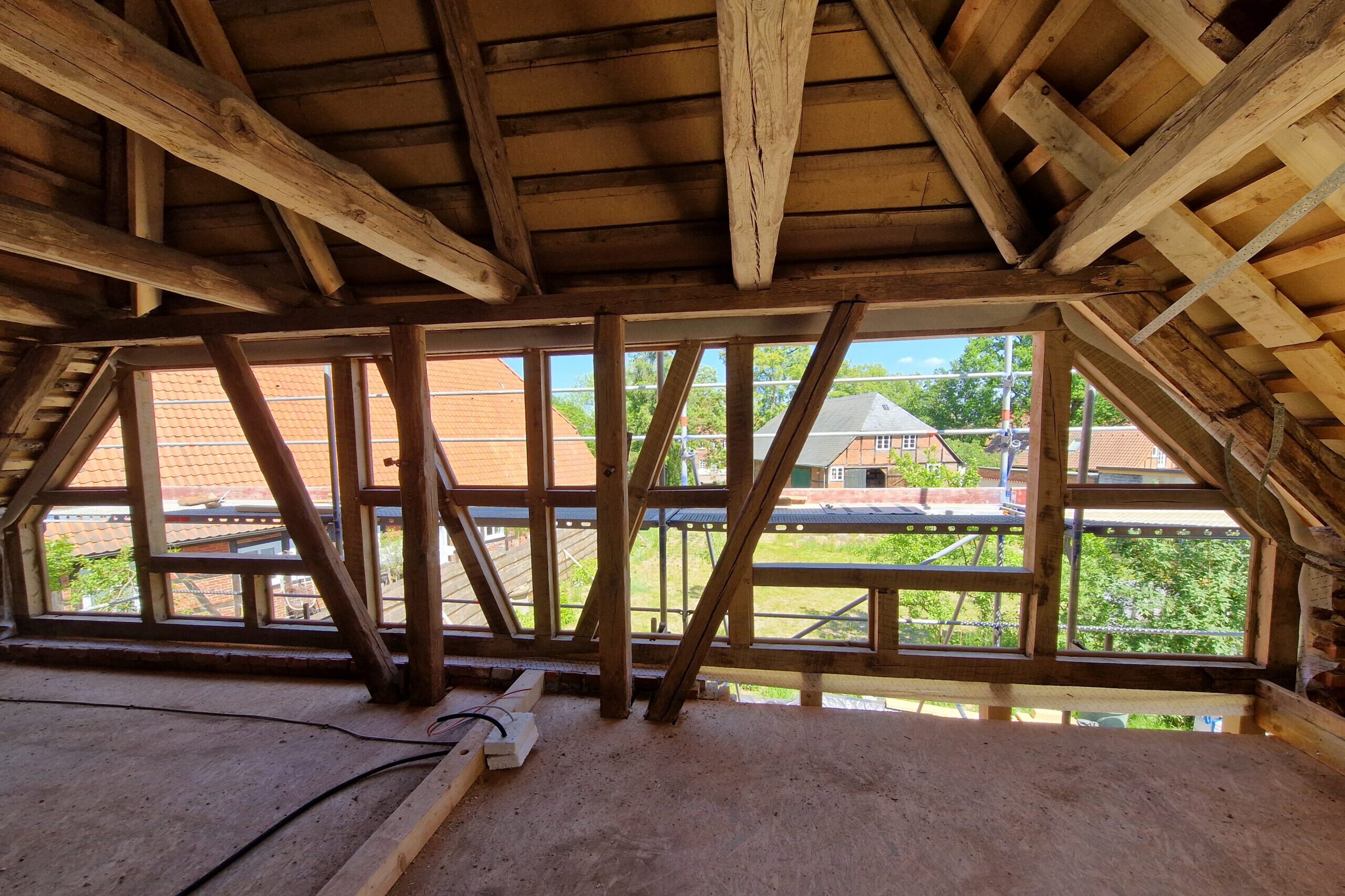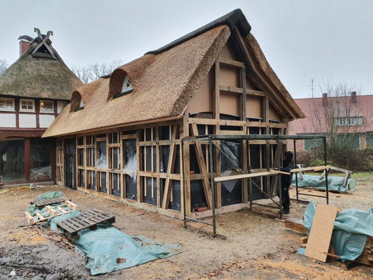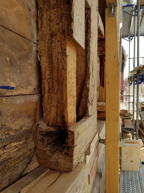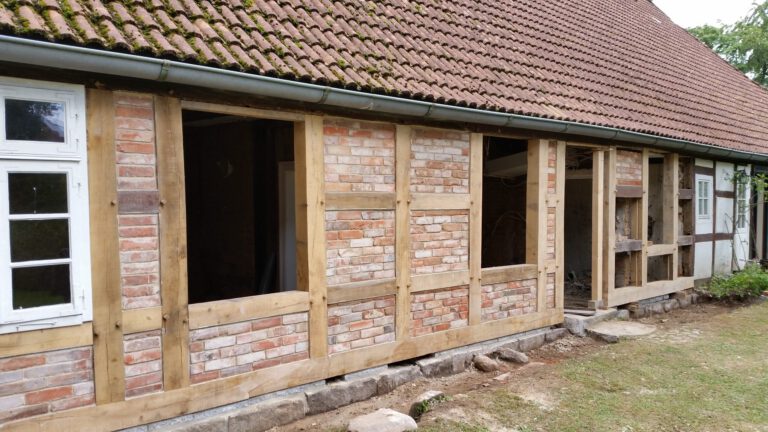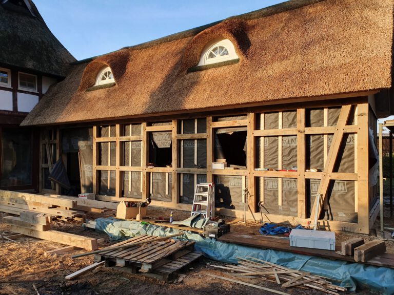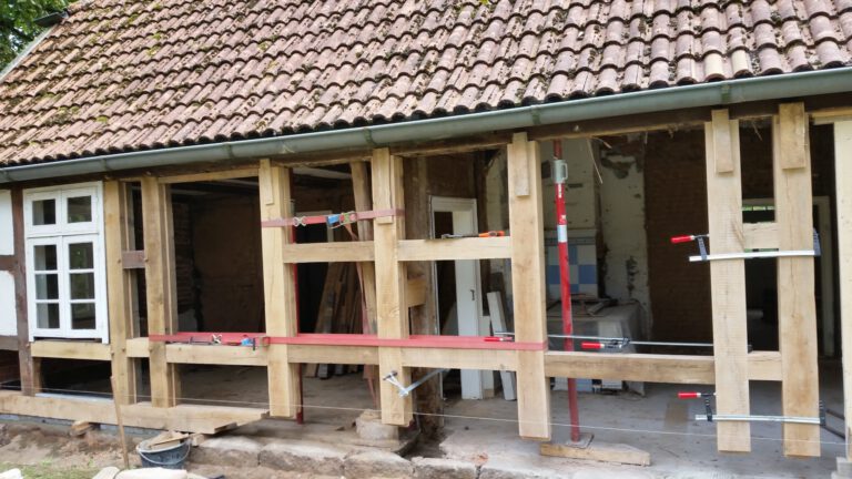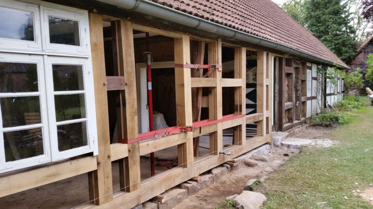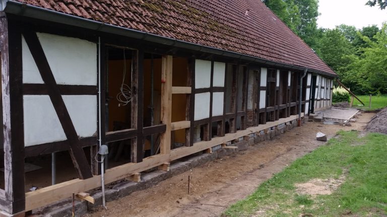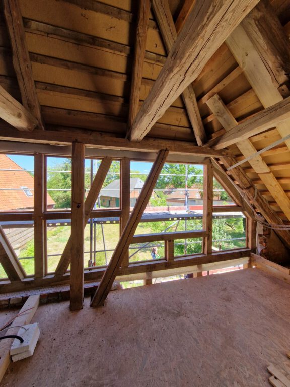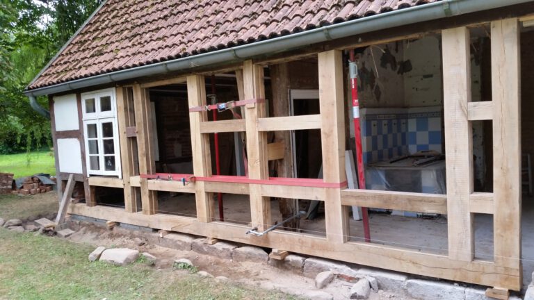 Wir restaurieren und erneuern Fachwerkkonstruktionen mit Respekt vor der ursprünglichen Substanz und dem Wissen um traditionelle Techniken. Dabei ersetzen wir beschädigte Hölzer fachgerecht, überarbeiten Verbindungen und sorgen für eine solide, dauerhaft funktionierende Konstruktion.