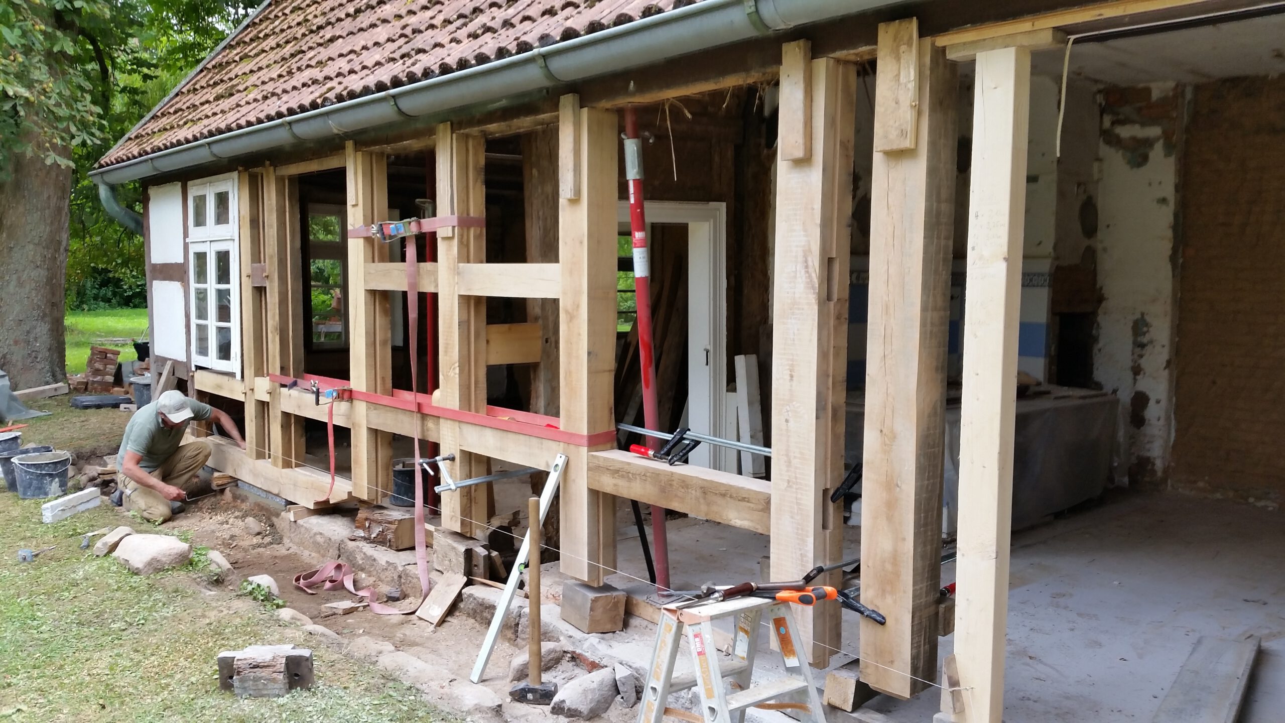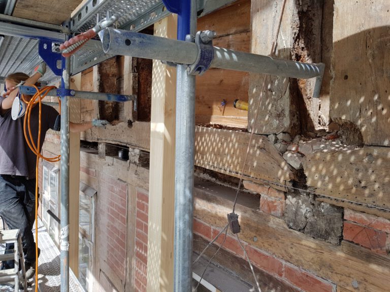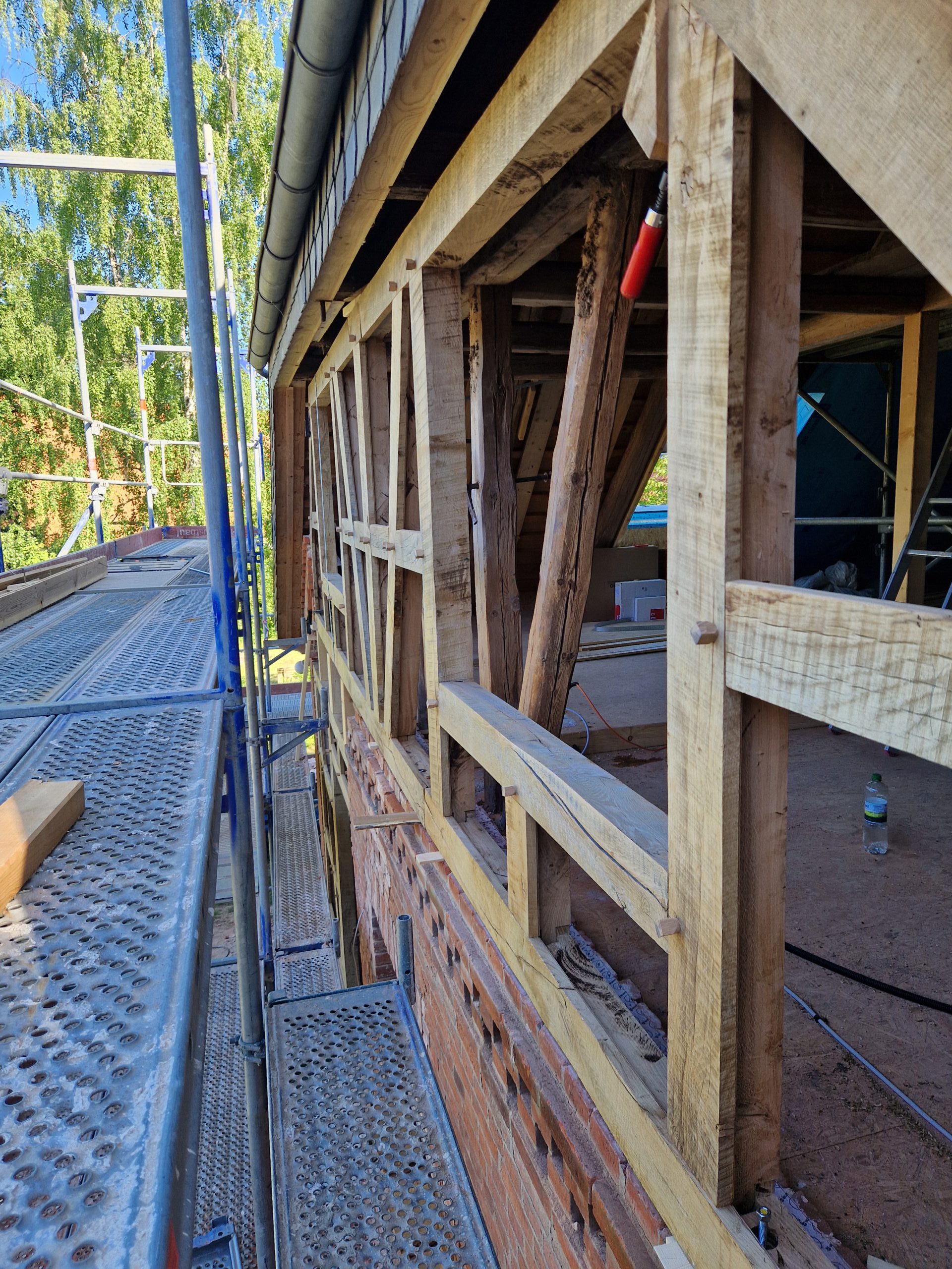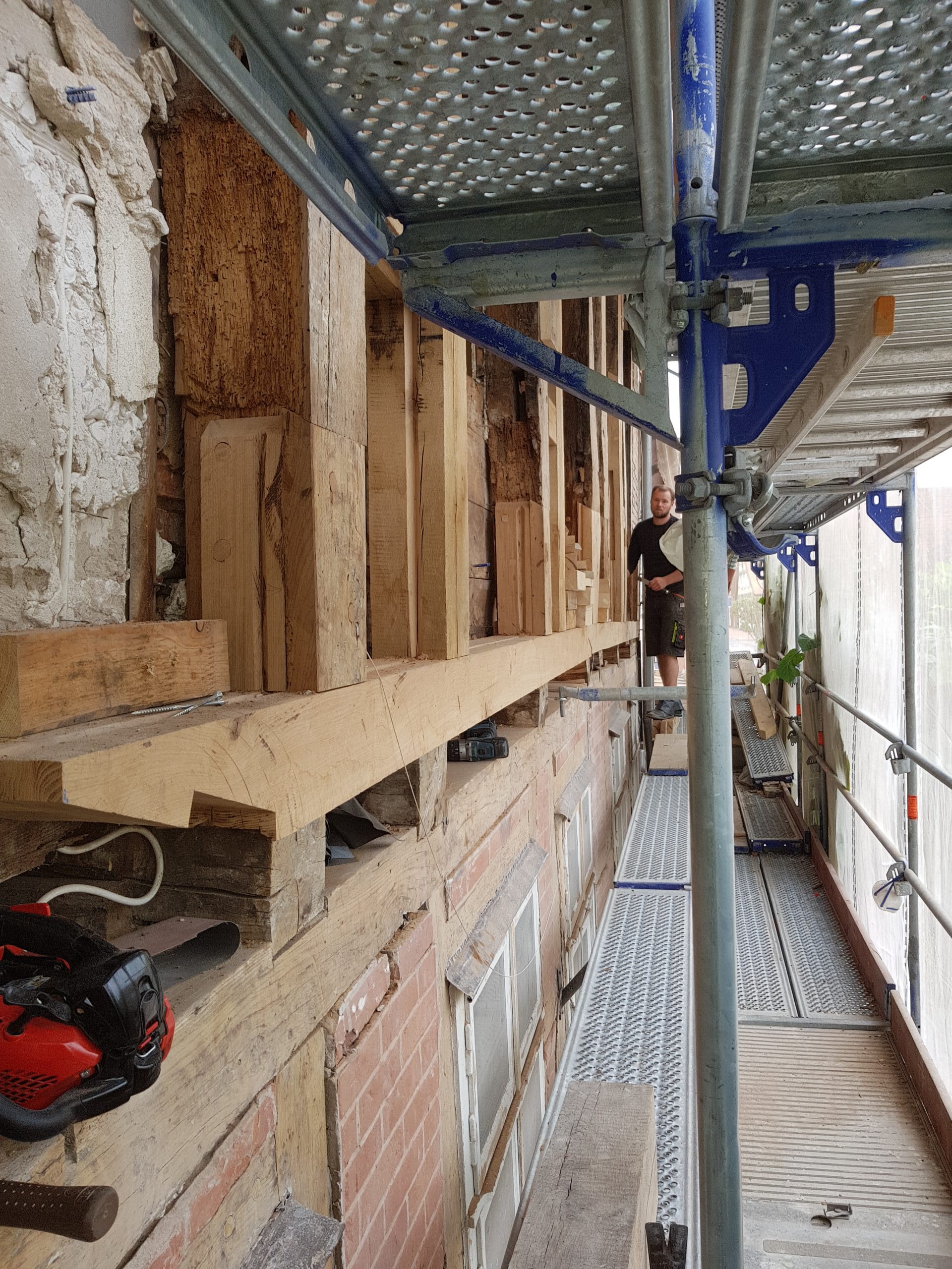 Wir restaurieren und erneuern Fachwerkkonstruktionen mit Respekt vor der ursprünglichen Substanz und dem Wissen um traditionelle Techniken. Dabei ersetzen wir beschädigte Hölzer fachgerecht, überarbeiten Verbindungen und sorgen für eine solide, dauerhaft funktionierende Konstruktion.