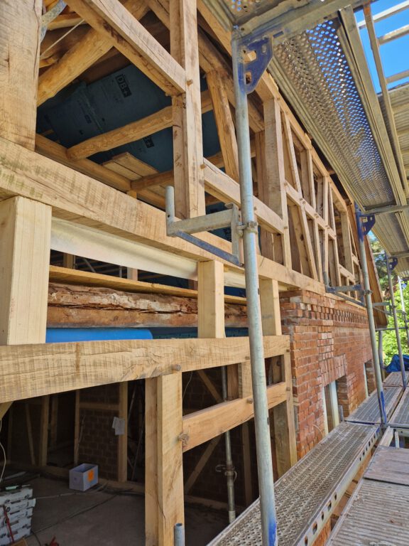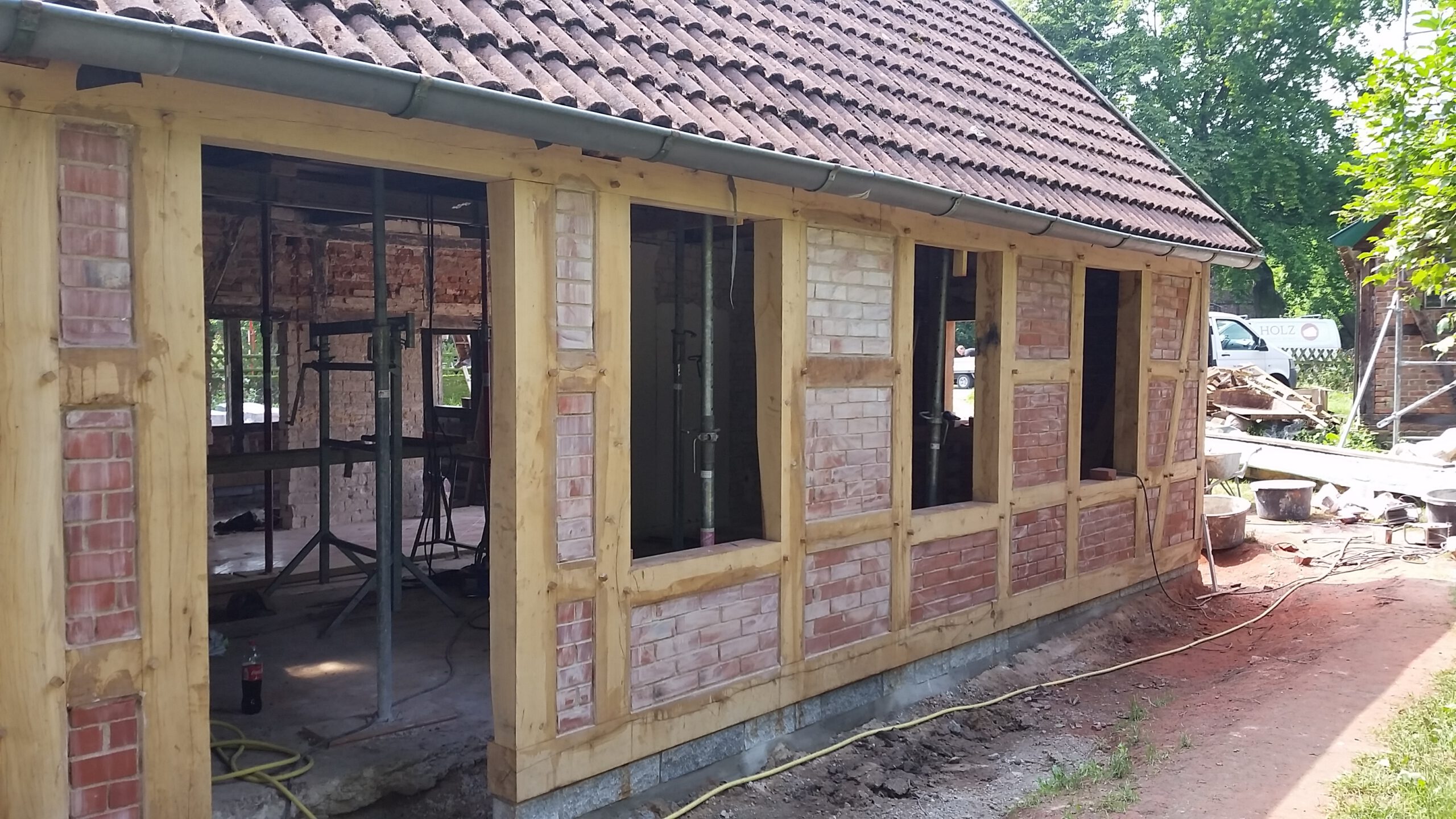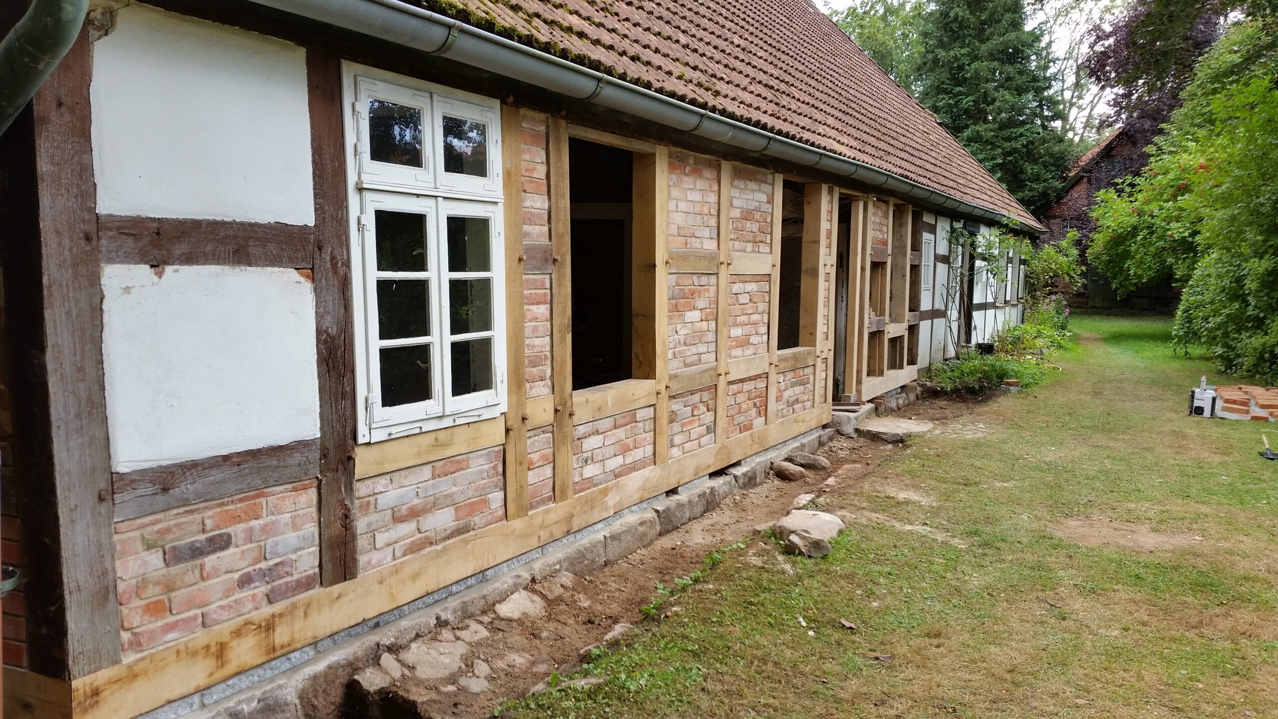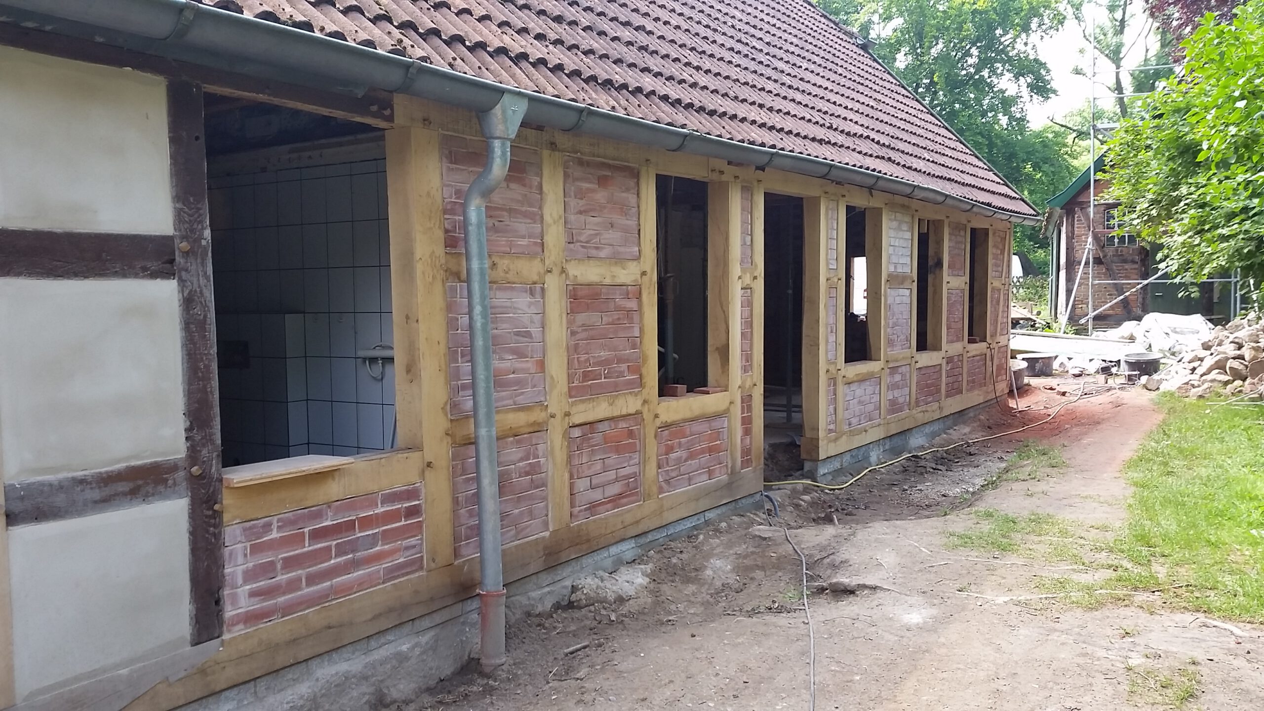 Wir restaurieren und erneuern Fachwerkkonstruktionen mit Respekt vor der ursprünglichen Substanz und dem Wissen um traditionelle Techniken. Dabei ersetzen wir beschädigte Hölzer fachgerecht, überarbeiten Verbindungen und sorgen für eine solide, dauerhaft funktionierende Konstruktion.